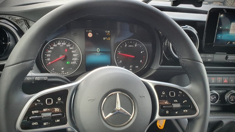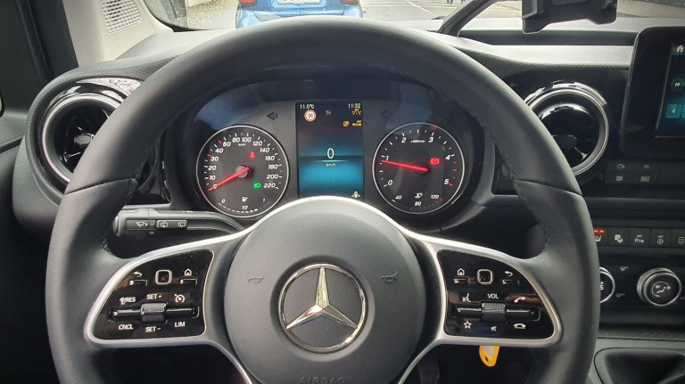 Chiar dacă are un preț mai mic decât alte modele Mercedes și dimensiunea unui vehicul comercial, la volan plăcerea rămâne aceeași. Comenzile sunt amplasate la îndemână, totul este logic, intuitiv. Cu excepția afișajului color multifunctional situat între cadranele vitezometrului și turometrului, instrumentarul de bord este analog.
