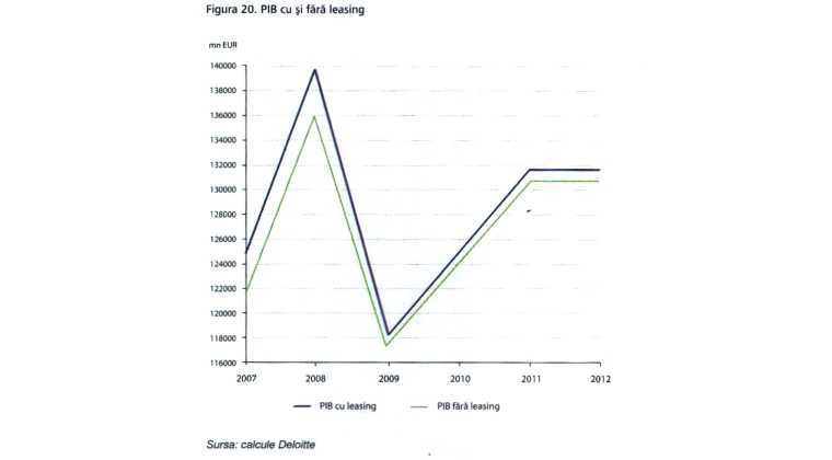 Defalcat, in perioada 2007-2008, moment in care industria de leasing financiar se afla in plina expansiune, contributia acestui sector la valoarea adaugata a fost de 2,6% din PIB, dar a incetinit spre 0,6% din PIB in perioada 2010-2012, potrivit studiului Deloitte.