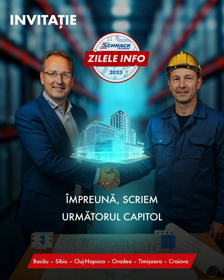 Schrack Technik România, filiala grupului austriac Schrack Technik GMBH, unul dintre cei mai importanți jucători (producător și distribuitor) de pe piața de instalații și echipamente electrice, continuă dezvoltarea la nivel regional și anunță Zilele Info Schrack 2025, în toate orașele-sucursale, începând cu 7 octombrie.