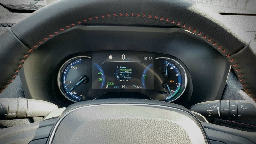 Acest model nu are un turometru clasic, cadranul este împărțit între PWR (power), ECO și CHG. La 100 de km/h, acul părăsește zona ECO, iar la o accelerație puternică ajunge în zona de sus - PWR.
