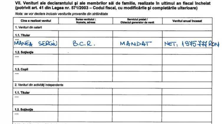 Sergiu Manea a facut parte din Consiliul de Administratie al companiei Romgaz intre iulie si decembrie 2014, cand a renuntat la functie. Ca urmare, suma incasata in 2014 de Sergiu Manea apare in declaratia de avere completata la 18 februarie 2015. Potrivit documentului publicat pe site-ul Romgaz, vicepresedintele executiv al BCR a incasat un venit net de peste 1,97 milioane de lei in 2014 (peste 442.000 euro), ceea ce inseamna un venit lunar, care include salarii si bonusuri, de aproximativ 37.000 euro.