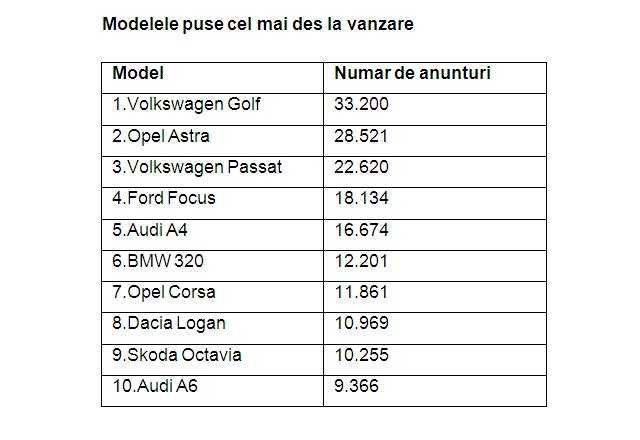 Ca si pondere din totalul autoturismelor prezente la vanzare pe Autovit.ro, 36% au fost cu preturi sub 3.000 euro, 60% au reprezentat masinile sub 5.000 euro iar 84% au reprezentat masinile sub 10.000 euro. Peste pragul de 10.000 de euro au fost doar 16% dintre anunturi.