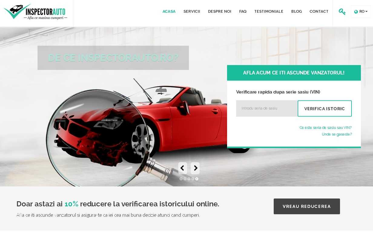 Inspectorauto.ro ofera in prezent istoricul de daune al unei masini sau daca a fost raportata ca furata in Romania si alte 6 tari din U.E., putand astfel sa-si dea seama daca sunt pe cale sa cumpere o masina fara accident, una care a avut doar avarii minore sau una care a fost dauna totala.