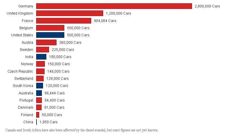 Distributia pe tari a masinilor diesel Volkswagen afectate de scandalul emisiilor