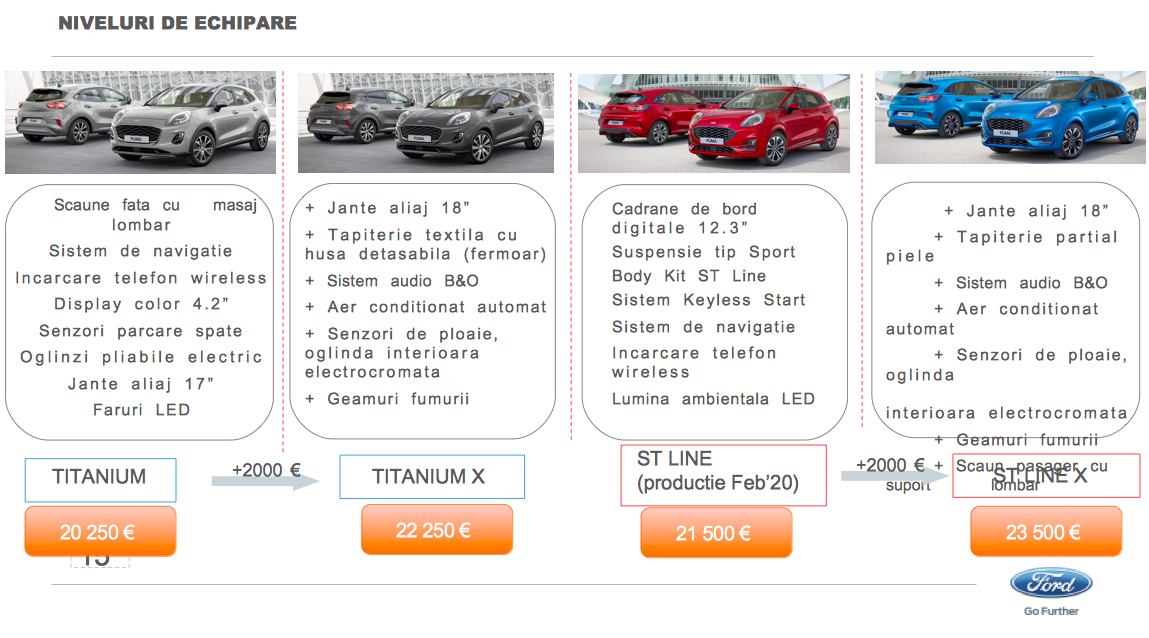 "Primele unitati Ford Puma vor fi livrate la jumatatea lunii ianuarie. Comparativ cu Ford EcoSport, noul Ford Puma costa cu 2.000 euro mai mult", a declarat Cristian Prichea, director general Ford Romania – Compania Nationala de Vanzari.