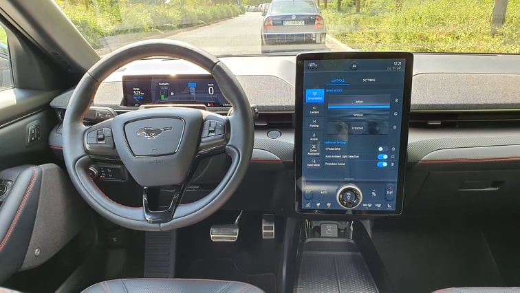 Cel mai mare avantaj al acestui Mustang electric de test drive nu a fost puterea, ci autonomia de peste 540 de km, furnizată de o baterie cu o capacitate netă de 88 kW. Este o autonomie reală, afișată de computerul de bord, cu bateria mașinii încărcată la 100%.