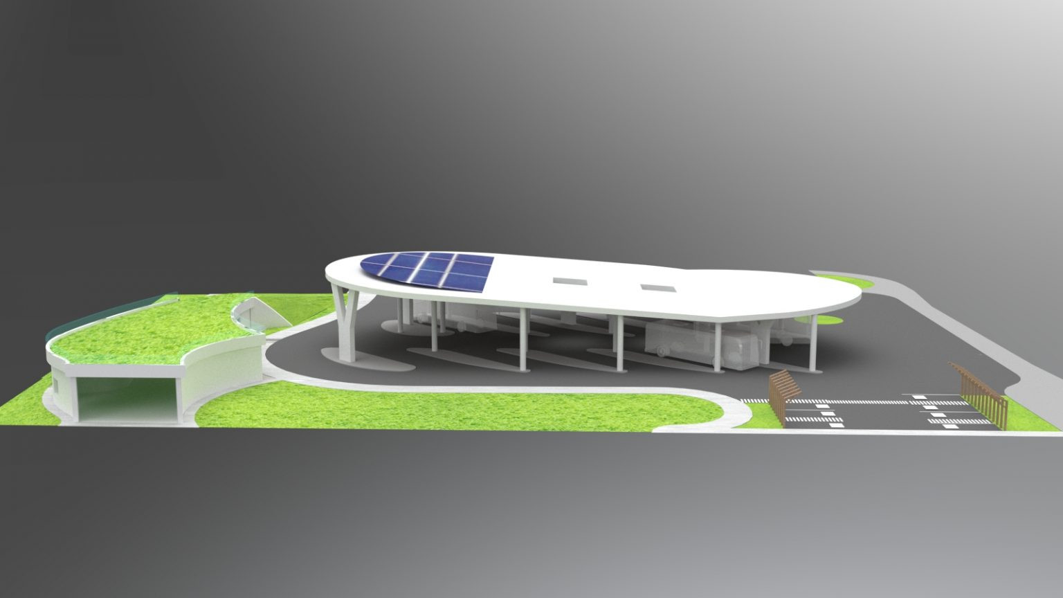 Acoperișul autogării este tip terasă verde, circulabilă. Panta acoperișului este de 3%. Deoarece partea din spate a clădirii este parțial îngropată, spațiul verde de pe construcție comunică cu restul spațiului verde.