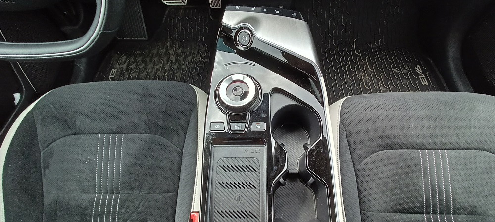 Interiorul lui EV6 oferă și un sentiment de calitate, mulțumită materialelor folosite. Scaunele de pe modelul de test erau îmbrăcate în piele perforată, cu inserții contrastante albe, ce se regăseau și pe panourile interioare ale portierelor. Materialele de pe uși și de pe bord sunt plăcute la atingere, iar plasticul e de bună calitate, cu excepția obișnuită a zonelor de jos, unde acesta e mai tare, pentru a rezista mai bine în timp.