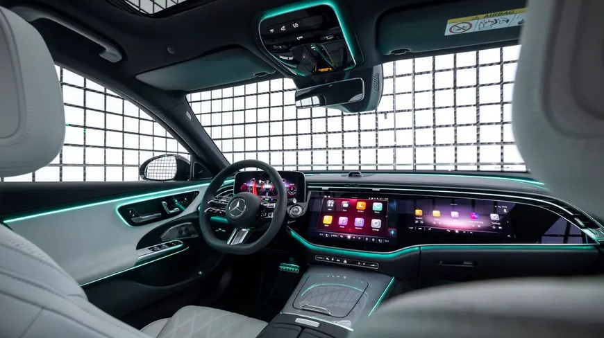 Mercedes-Benz a ales să prezinte noul Clasa E de la interior către exterior pentru că știe că, în prezent, constructorii premium se concentrează în primul rând pe spațiul pentru pasageri și pe tehnologiile pe care le oferă. Tocmai de aceea, W214 este plin de tehnologie, pe lângă bordul cu „Superscreen” de pe versiunile superioare de echipare.