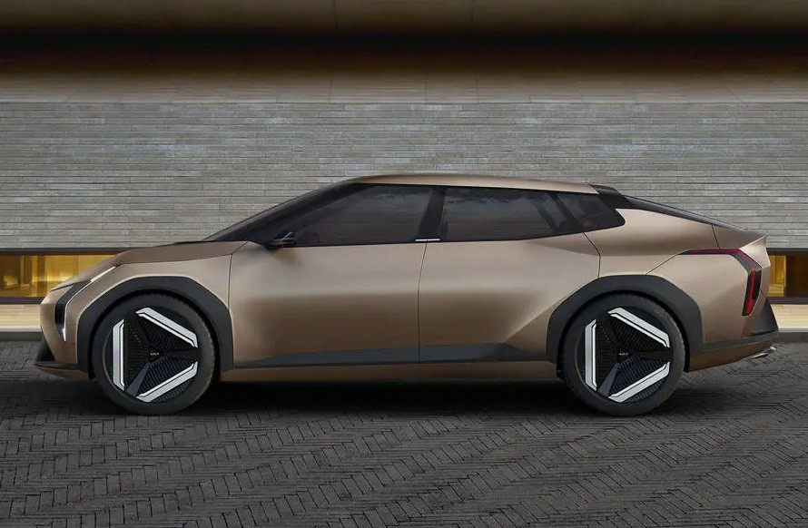 Mai departe, EV4 este o berlină cu o linie bizară. Cu linie de crossover, datorită roților de dimensiuni generoase ce par să „împingă” mașina pe picioroange, EV4 va fi un rival pentru Tesla Model 3, dar și pentru Polestar 2. Designerul-șef Kia Karim Habib a spus că nu este „nici un monovolum clasic, dar nici o berlină”. Partea frontală este scurtă, puntea față fiind împinsă spre extremitatea mașinii, dar spatele este alungit, cu o zonă posterioară de coupe liftback. Aripile sunt proeminente, dând alură de sportivitate (ce va ajuta la o eventuală versiune GT, cum vor primi câteva modele din gama Kia EV cum este EV2).