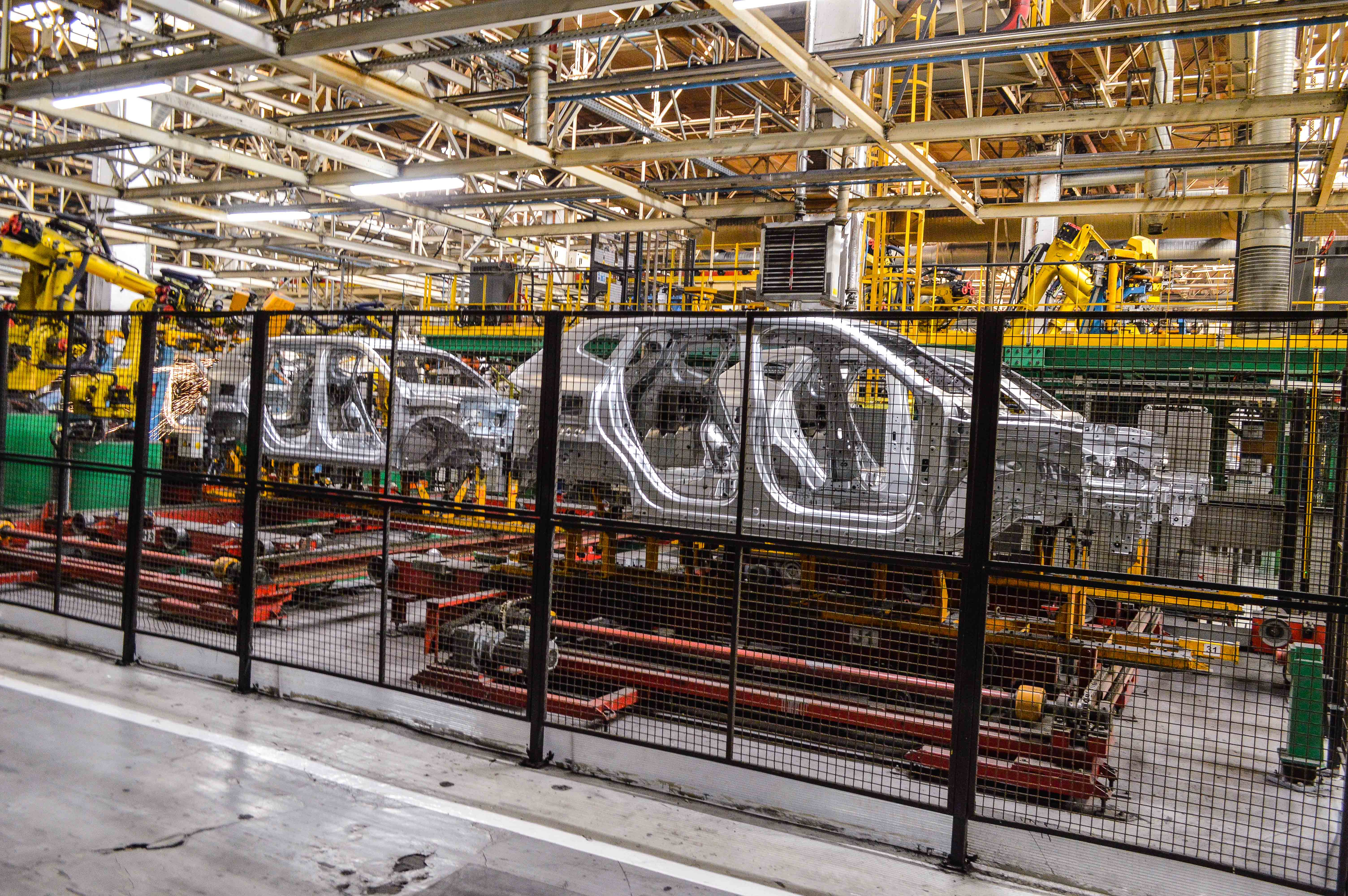 La departamentul Caroserii lucrează sute de roboți, mai ales pentru suduri și montajul preliminar