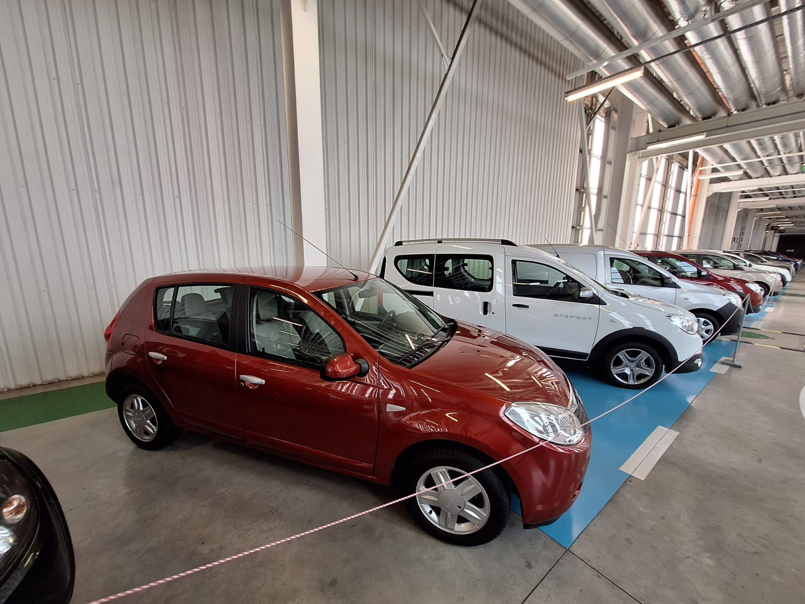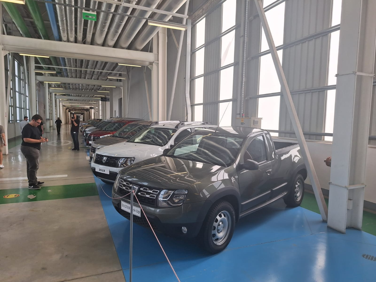 După ce treci de pe un culoar pe altul, ești întâmpinat de o altă serie de modele Dacia, dar, de această dată, vorbim de cele din „era nouă”, adică de după preluarea de către Renault. Regăsim, așadar, primul Logan, berlina bej deschis fiind o mașină importantă pentru industria auto românească.