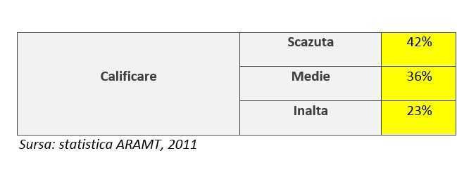 Majoritatea (42%) dintre cei angajati temporari din Romania ocupa pozitii de muncitori calificati sau necalificati. Un alt procent semnificativ de 36% este reprezentat de cei care au studii medii si doar 23% de cei care au studii superioare.