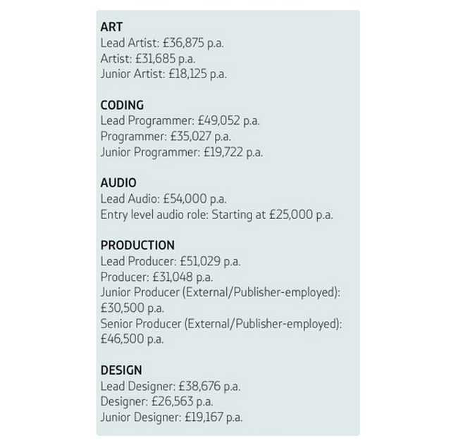 In ciuda faptului ca au un numar ridicat de studiouri de jocuri, industria de profil din Marea Britanie nu ofera salarii atat de atractive precum cele din SUA. Asa se face ca un programator poate castiga in Regatul Unit al Marii Britanii echivalentul a circa 40.000 de dolari, in timp ce in Statele Unite poate castiga de peste doua ori mai mult.