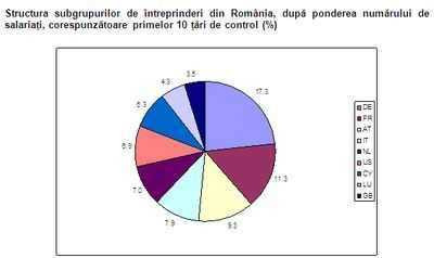 In functie de ponderea numarului de salariati, majoritatea subgrupurilor de firme din Romania sunt controlate din Germania, Franta sau Austria.