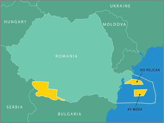 Compania canadiana detine doua perimetre in Marea Neagra - Midia si Pelican. Midia Resources, detinuta integral de Sterling, este operatorul perimetrelor Midia si Pelican. Ceilalti parteneri sunt Petro Ventures Europe (20%) si Gas Plus International (15%).