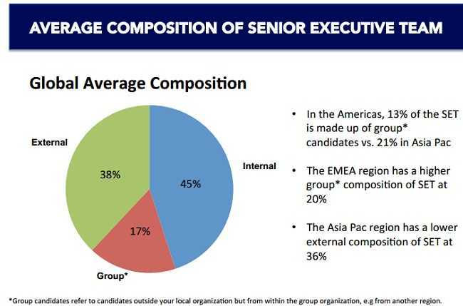 Totodata, in studiu se mai arata ca organizatiile cauta tot mai mult sa formeze echipe de executie care sa includa si candidati externi, nu doar oameni deja existenti in companie. Astfel, in medie o echipa este formata din candidati interni (45%), candidati externi (38%) si din alta divizie din compania mama (17%).