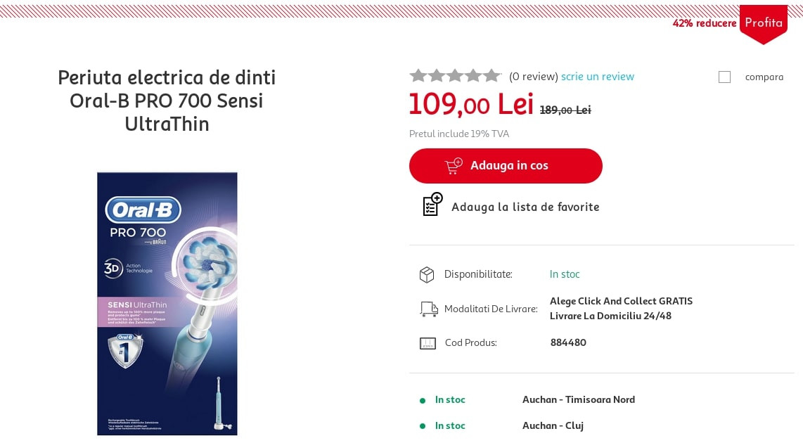 Campania de Black Friday de anul acesta aduce la Auchan reduceri si la produsele de ingrijire pentru femei si barbati. Astfel, un set de ingrijire pentru barbati marca Braun, pentru tunderea parului, are o reducere de pana la 26% si costa 110 lei. Un epilator Braun cu pensete si doua viteze, costa 110 lei. Pretul periutei de dinti Oral-B este redus cu 42%, la 110 lei. Pentru cei care isi masoara greutatea, cantarul de baie de la Tefal costa 56 de lei, fiind redus cu 30%.