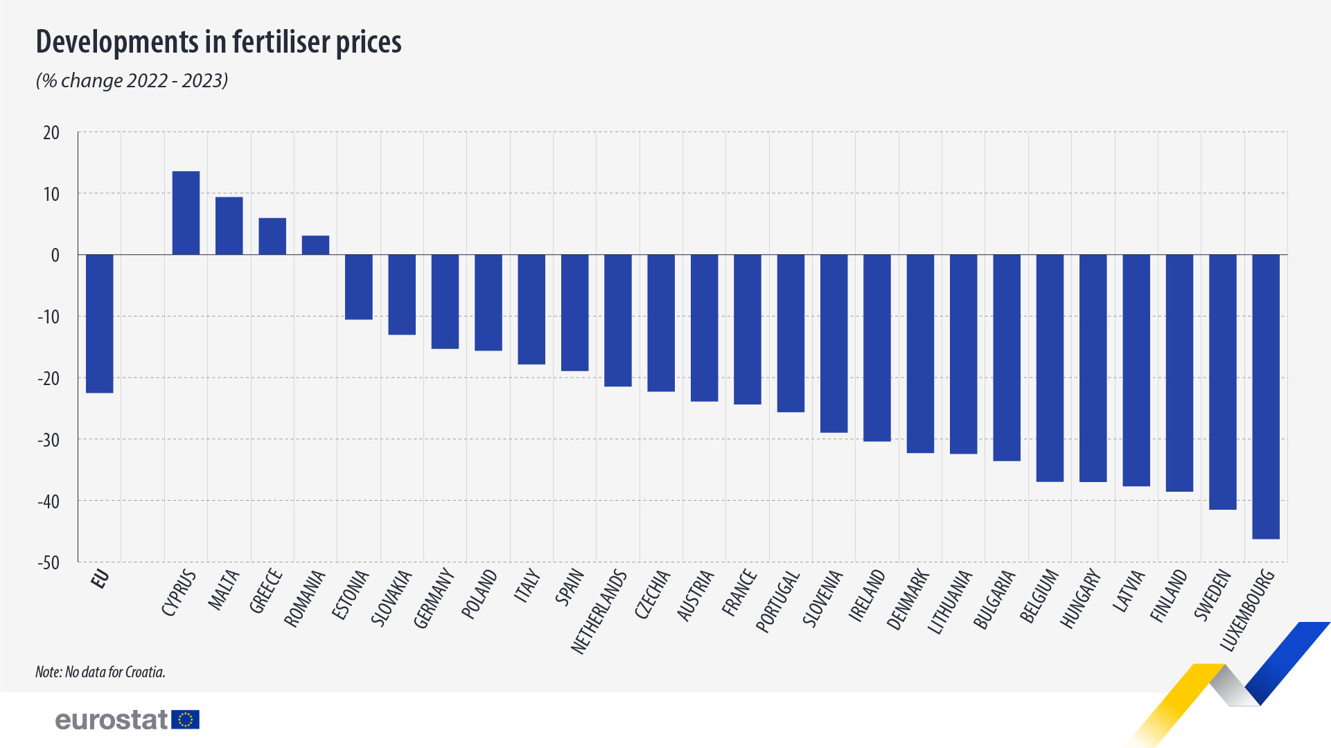 Trebuie precizat că nu doar prețurile gazelor, ci și cele și ale îngrășămintelor chimice au explodat în ultimii ani, ajungând să fie chiar și de 4 ori mai mari decât înaintea crizei energiei. În același timp, în jur de 70% din producția europeană de fertilizanți a fost oprită anul trecut. În 2023, situația s-a mai îmbunătățit, însă nu și în România. Potrivit datelor Comisiei Europene, țara noastră a fost printre puținele unde îngrășămintele au continuat să se scumpească, înregistrând un avans de 3 procente față de 2022.