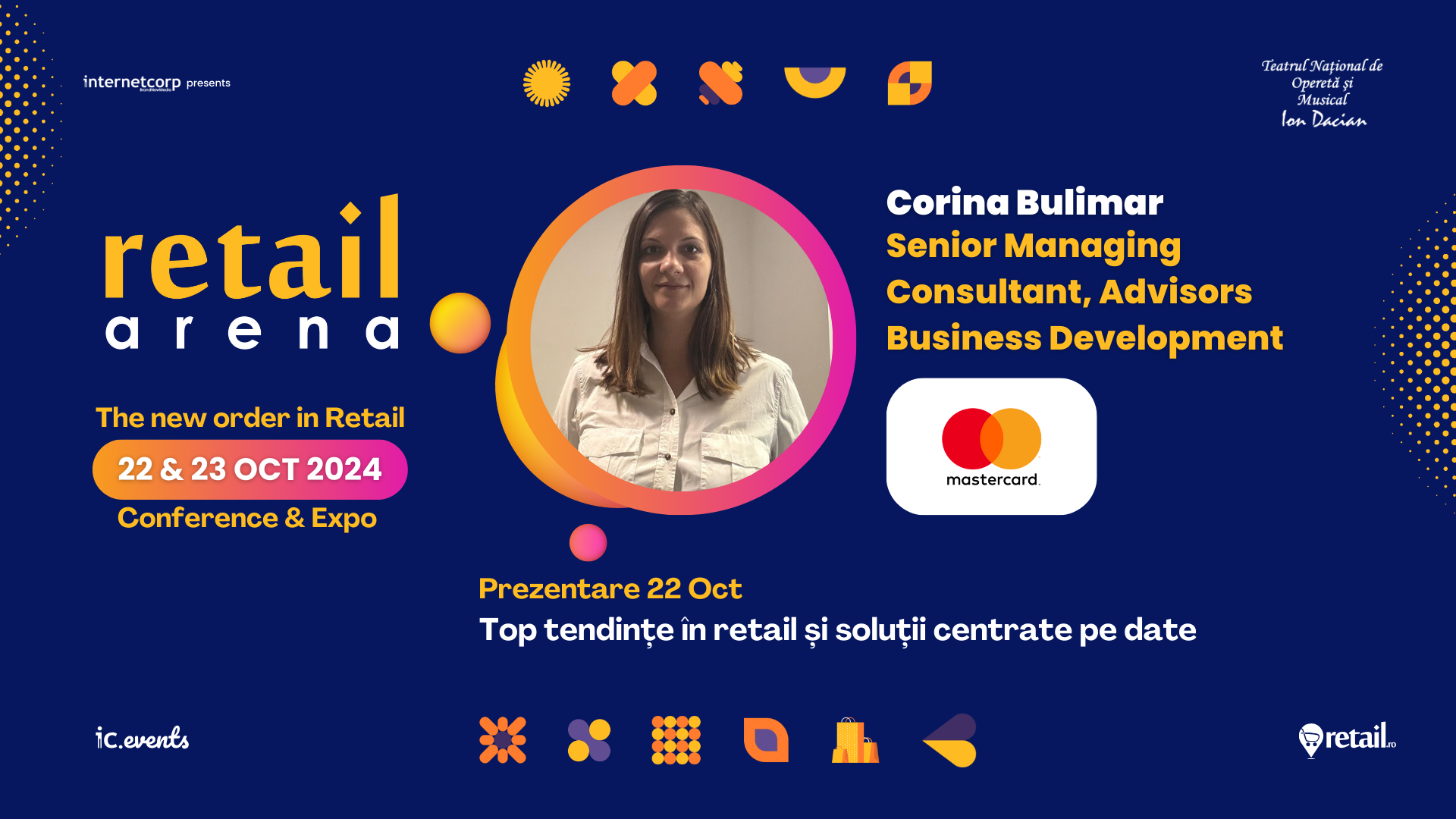 În plus, pe scenă va fi și Corina Bulimar, Senior Managing Consultant, Advisors Business Development Mastercard, care va vorbi despre tendințele în retail, alături de soluții adecvate bazate pe date.