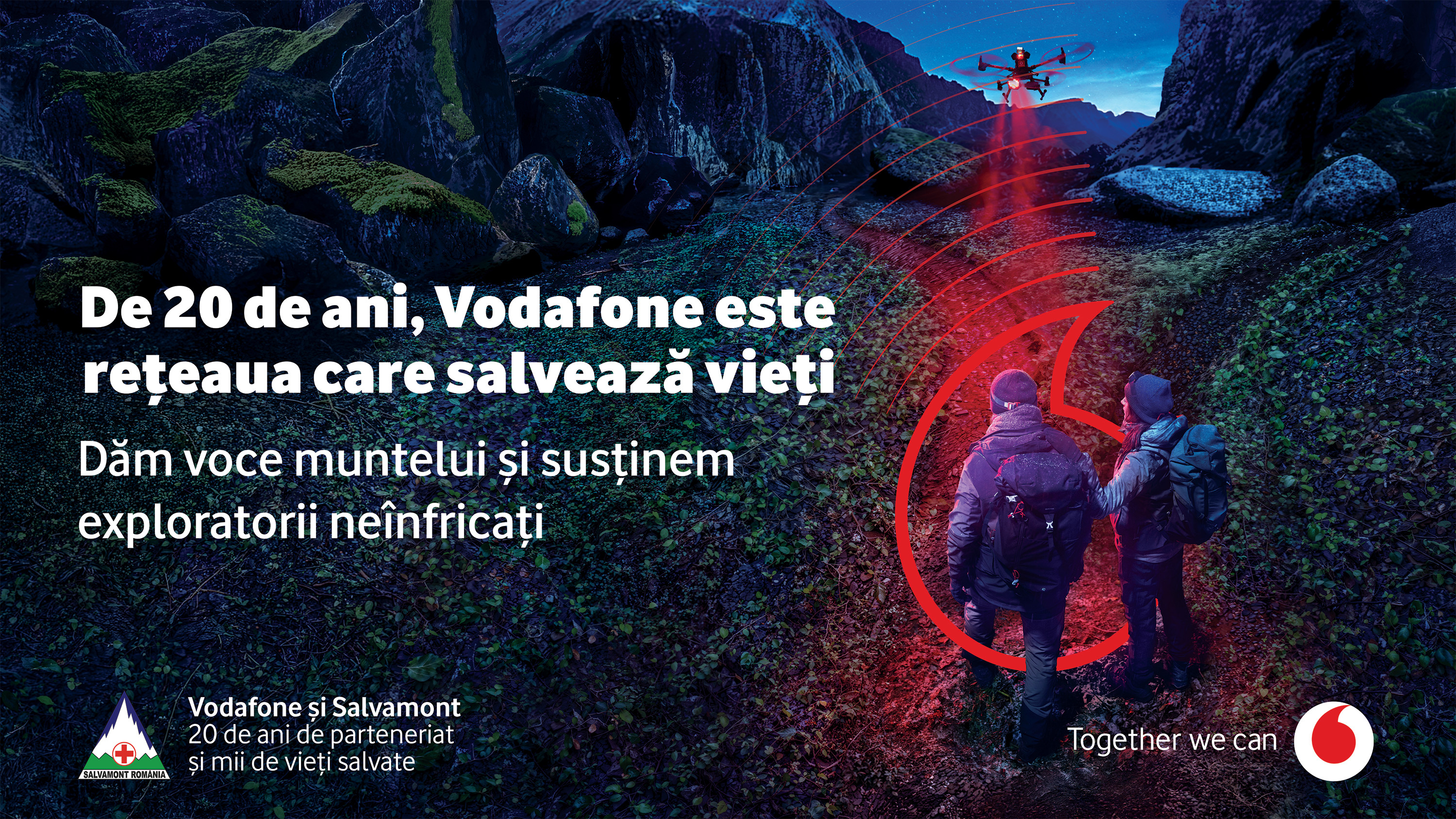 Vodafone, rețeaua care salvează vieți, își consolidează astfel angajamentul față de parteneriatul Salvamont printr-o campanie integrată de comunicare dedicată creșterii nivelului de conștientizare asupra riscurilor de pe traseele montane, amintind totodată soluțiile digitale și AI folosite pentru salvarea de vieți în operațiunile Salvamont.