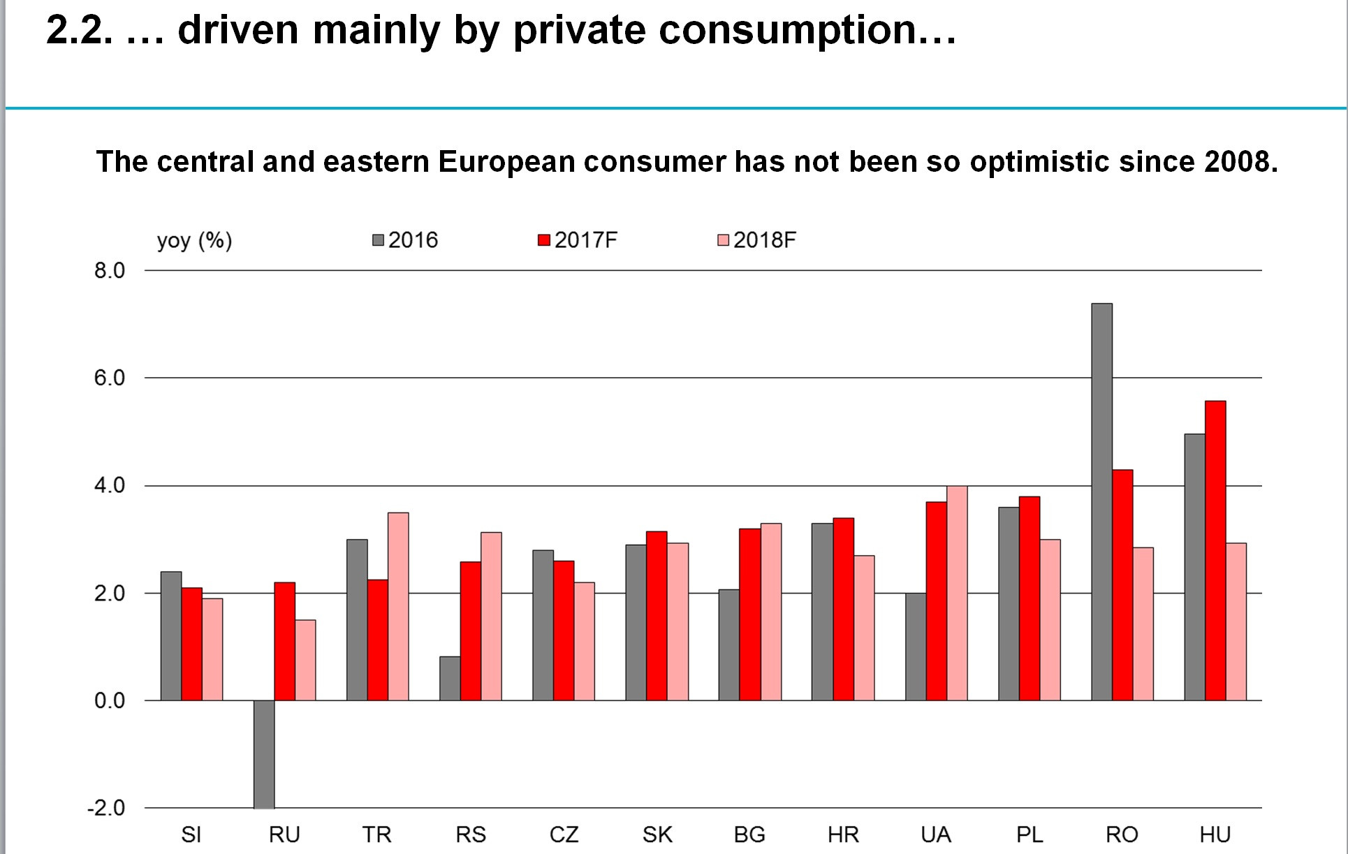 Valoarea acestora a inregistrat un declin de 4,5% la nivel local in 2016, iar pentru urmatorii doi ani se estimeaza un regres de peste 3%, mult sub valorile statelor din regiune, ca Bulgaria sau Ungaria.