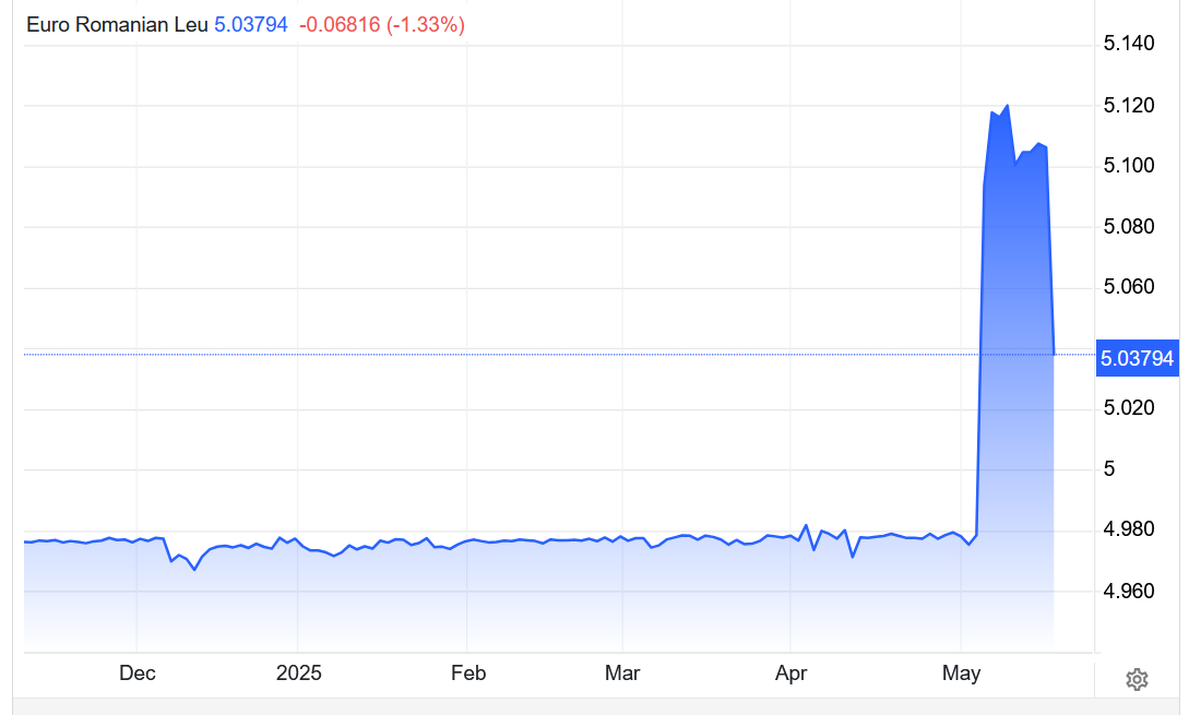 Luni, la scurt timp după anunțul rezultatelor oficiale, leul s-a întărit puternic (+1,43%) față de euro, BNR anunțând cel mai bun curs de după turul 1 al alegerilor prezidențiale.