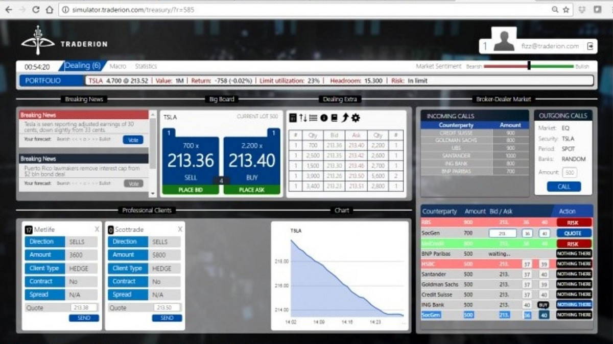 Compania a inceput sa vanda produsul imediat ce primele module au fost gata, iar acum are clienti in toate marile centre financiare, produsul fiind folosit de unele dintre cele mai mari banci ale lumii in programele lor de recrutare si training ale traderilor. Pe langa banci, produsul este folosit si in universitati, in cluburile studentesti de finante si investitii si chiar si de autoritatile de reglementare ale pietelor, pentru a invata mai bine despre cum reactioneaza traderii la socurile din piata si cum iau deciziile de tranzactionare in scenariile cu volatilitate ridicata.