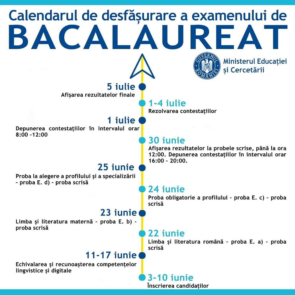 - În data de 24 iunie va avea loc Proba obligatorie a profilului - proba E c) - proba scrisă, iar pe 25 iunie proba la alegere a profilului şi a specializării - proba E d) - proba scrisă.