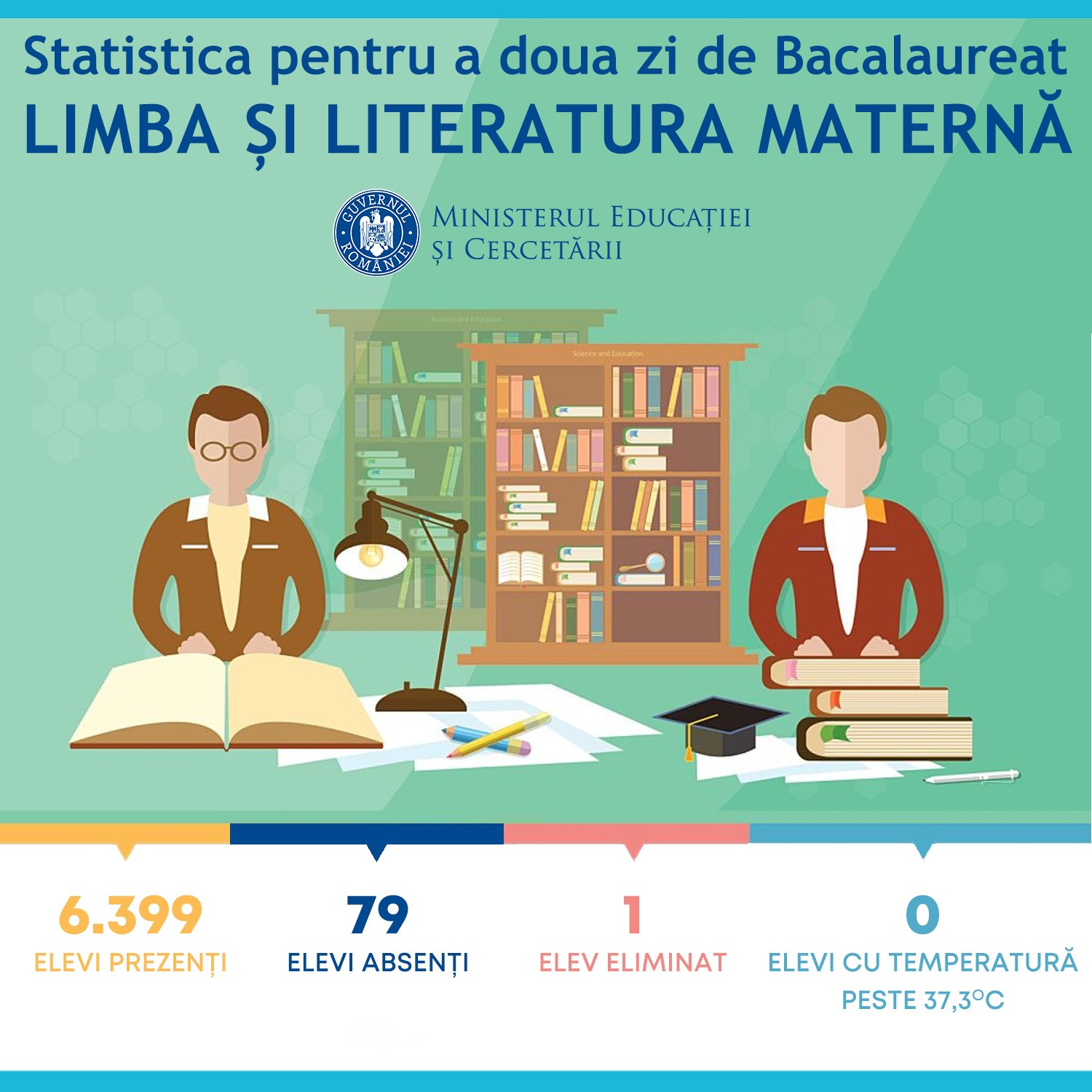 Absolvenții clasei a XII-a, care au studiat într-o limbă a minorităților naționale (croată, italiană, germană, maghiară, slovacă, sârbă, ucraineană sau turcă), au susținut marți proba scrisă la disciplina Limba și literatura maternă. Au fost prezenți 6.399 de candidați. Alți 79 de candidați au fost absenți.