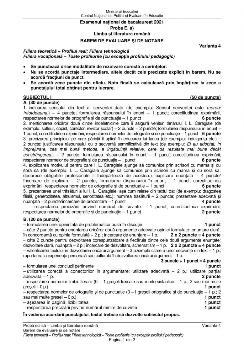 Baremul pentru limba și literatura română poate fi consultat AICI.