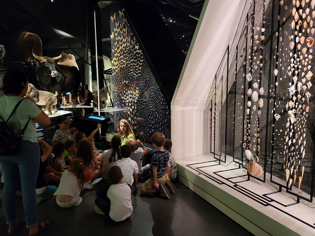 Ei bine, lucrurile au stat cât de poate de diferit. Atunci când intră în muzeu, fiecare copil primește un caiet în care sunt desenate o parte dintre exponatele din muzeu. Pe parcursul vizitei lor în muzeu, copii trebuie caute și să bifeze în caiet, exponatele pe care le-au văzut în muzeu. Grupuri de câte 10-20 de copii sunt însoțiți de un singur adult, maximum doi, se opresc din loc în loc, unde li se explică pe înțelesul lor ce văd, iar unele exponate pot fi atinse pentru ca cei mici să își dezvolte și simțul tactil. Tot acest proces se desfășoară într-o liniște aproape perfectă (doar din când în când, copii zic un “bonjour” în șoaptă celorlalți vizitatori ai muzeului).