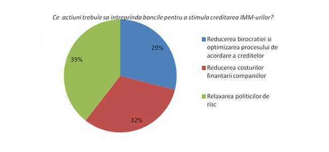 Relaxarea politicilor de risc si reducerea costurilor finantarii, in ceea ce priveste rata dobanzii si comisioanele, sunt actiunile care ar putea stimula creditarea firmelor, arata un sondaj realizat de portalul de servicii financiare Efin.ro.