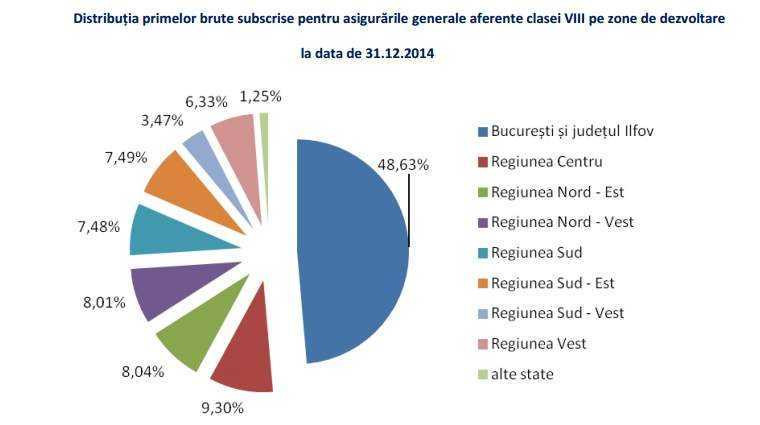 Mai mult, in sprijinul afirmatiei ca foarte multi romani au renuntat sa-si asigure locuinta la valoarea reala de reconstructie sta drept suport distributia pe regiuni de dezvoltare a primelor brute subscrise aferente asigurarilor de locuinta (obligatorii si facultative), care evidentiaza faptul ca in Bucuresti si judetul Ilfov ramane concentrata o pondere de jumatate din numarul total al contractelor (1,8 milioane asigurari facultive si 1,5 milioane obligatorii).