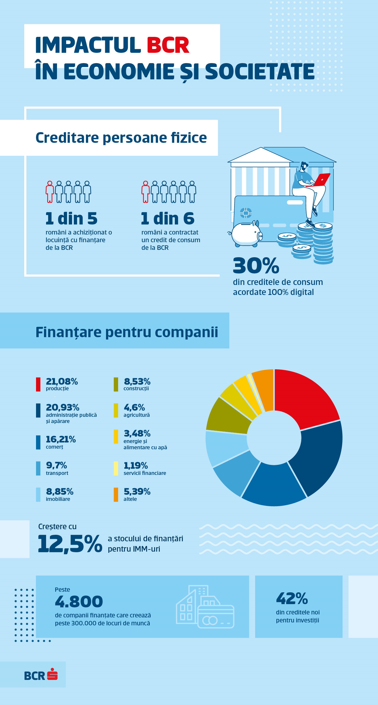 „Adaptarea și reziliența au fost cuvintele dominante, la nivel de business, dar și la nivel personal pentru toți colegii mei. BCR a pus pe primul loc siguranța angajaților și sănătatea financiară a clienților și am reușit să trecem împreună, mai puternici, peste obstacole. Colegilor mei vreau să le mulțumesc pentru rapiditatea cu care s-au adaptat contextului, dar și pentru dedicarea și pasiunea pe care le-au pus în munca lor. Am continuat să învățăm din puterea de reinventare a clienților noștri și am ținut deschis, fiind un partener de încredere pentru antreprenori și companii în efortul lor de a asigura continuitatea locurilor de muncă. Am oferit soluții de finanțare în domenii cheie ale economiei pentru ca România SA și România SRL să continue să producă valoare adaugată. Misiunea noastră continuă în 2021: sprijin real pentru alegeri financiare inteligente, prin adaptarea la nevoile clienților, servicii financiare personalizate, transformare digitală continuă și programe educaționale incluzive”, a declarat Sergiu Manea (foto), CEO Banca Comercială Română.