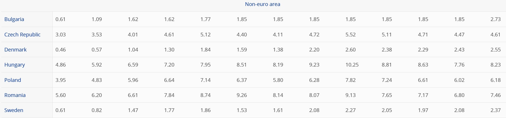 Dobânzile la care se împrumută țările din Uniunea Europeană (zona non-euro)