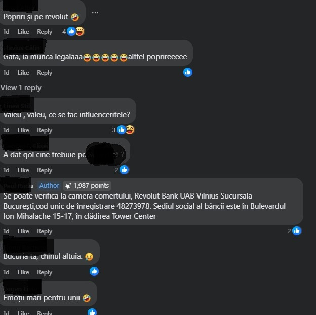 Anunțul făcut de bancă a angrenat mai multe comentarii ale utilizatorilor români care spun că noua mutare va facilita accesul ANAF să verifice plățile făcute prin aplicația bancară. Unii români spun chiar că își vor șterge conturile la Revolut și vor căuta un alt mod de a efectua plăți fără a fi în „vizorul direct” al agenției fiscale.