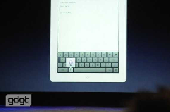 Element de noutate: Tastatura virtuala a iPad 3 poate fi inlocuita cu dictarea vocala, prin intermediul unui microfon, tehnologie similara Siri de pe iPhone, potrivit WSJ.com