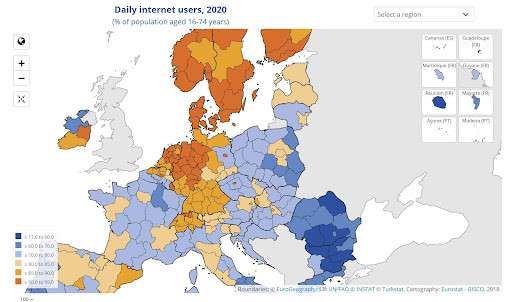 De asemenea, tot din datele oferite de către Eurostat, observăm că în ceea ce privește românii cu abilități digitale superioare, doar 10% din populația țării se încadra în 2019 în această categorie și 43% în ceea ce privește competențele digitale reduse. Datele ne situează pe ultimele locuri în rândul statelor membre UE, cot la cot cu Bulgaria.