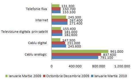 Evolutia numarului de clienti ai UPC Romania intre ianuarie 2009 si martie 2010