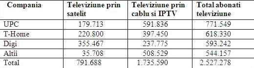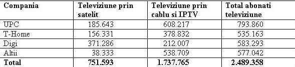 Pe de alta parte, UPC continua sa isi mentina prima pozitie insa operatorul a pierdut in primul semestru din acest an peste 22.000 de abonati.