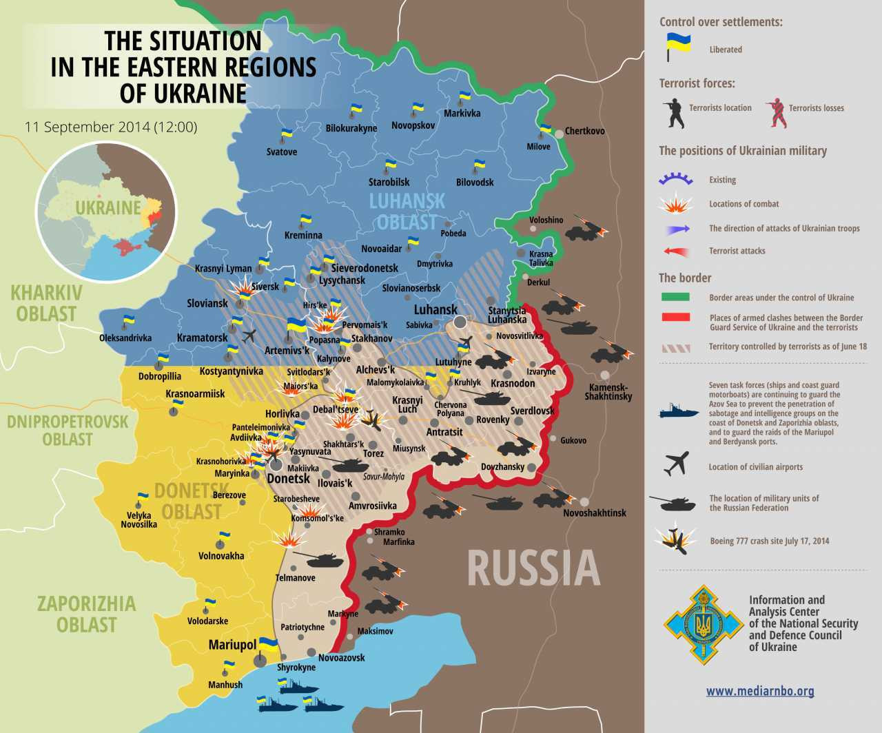Daca informatiile prezentate in cadrul hartii de catre armata ucraineana sunt reale si corecte, situatia intareste ideea ca separatistii prorusi vor sa captureze orasul-port Mariupol. De asemenea, Ucraina admite astfel ca rebelii, sustinuti de Moscova, au preluat controlul asupra zonei de frontiera pe toata fasia de pamant de la Lugansk si pana la Marea Azov.