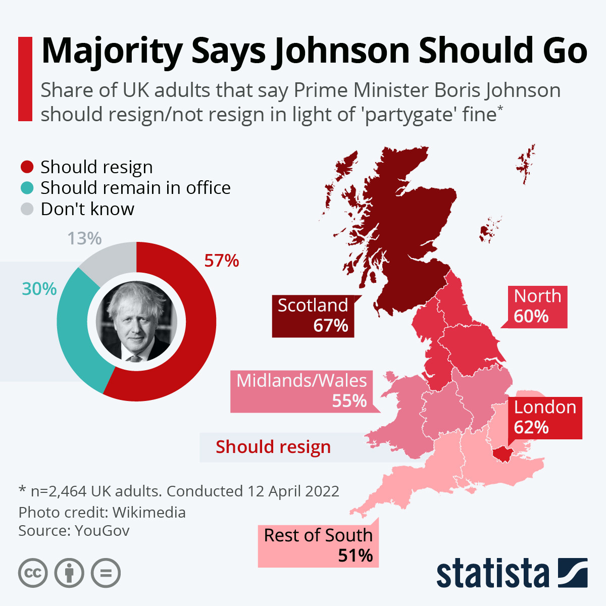 Pe 21 aprilie, legislativul britanic a lansat o anchetă împotriva premierului, acuzat că a indus în eroare legislativul de la Londra prin reacţiile sale iniţiale la informaţii conform cărora a încălcat măsurile de combatere a epidemiei de coronavirus. Johnson a prezentat scuze în parlament pentru că a participat la o petrecere în grădina din Downing Street 10, în timpul primului lockdown determinat de criza COVID-19, declarând că regretă ce a făcut şi că a crezut că întâlnirea respectivă, desfăşurată în 20 mai 2020, era o reuniune de muncă.