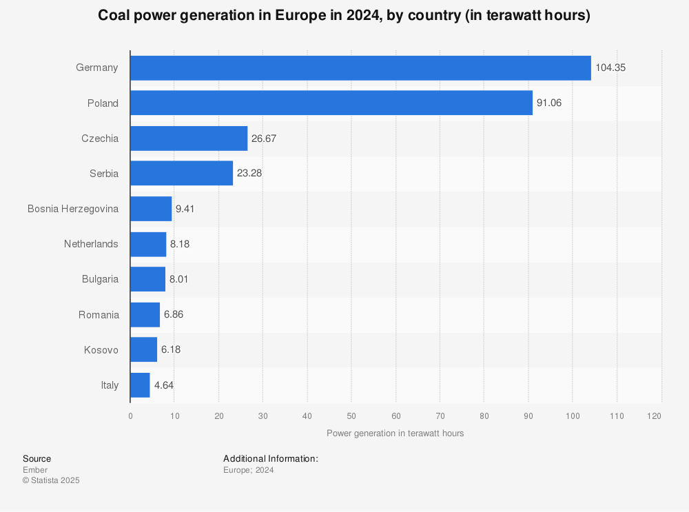 Berlinul a închis ultima mină de antracit în 2018, dar mai are încă mine de lignit și vrea să importe cărbune din America. În 2020, aproape un sfert din producția de energie electrică a Germaniei era bazată pe cărbune. În România, procentul este ceva mai mic, de aproape 20%.