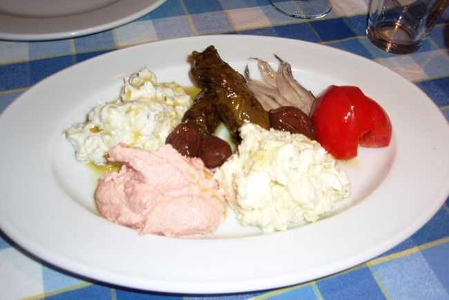 In meniu au de toate la Meze – nu foarte multe, insa destul de diversificat. Luandu-te dupa numele locului te-ai astepta ca la o gustare asortata (pe care mai dai si 50 de lei, pe deasupra) sa primesti tot felul de bunatati. Insa nu au socotit ca merita sa le strice pe noi, asa ca ne-au adus doua movilite cu crema de branza, una cu icre, doua sarmalute minuscule si trei aschii de peste caruia nici nu am putut sa-i simt gustul, atat de mici erau. Probabil ca era bun. Mielul a fost bun, garnitura de orez incolora si insipida; chiftelutele au ramas in farfurie, la fel si orezul, care era acelasi, de fapt, nu s-au gandit sa ne sugereze sa nu luam de doua ori aceeasi garnitura. Carnaciorii grecesti pareau sa fie chiar grecesti, cu mult cimbru si tari, adica mai putin buni decat niste carnati adevarati romanesti. Cartofii prajiti erau cartofi prajiti, nimic mai mult.