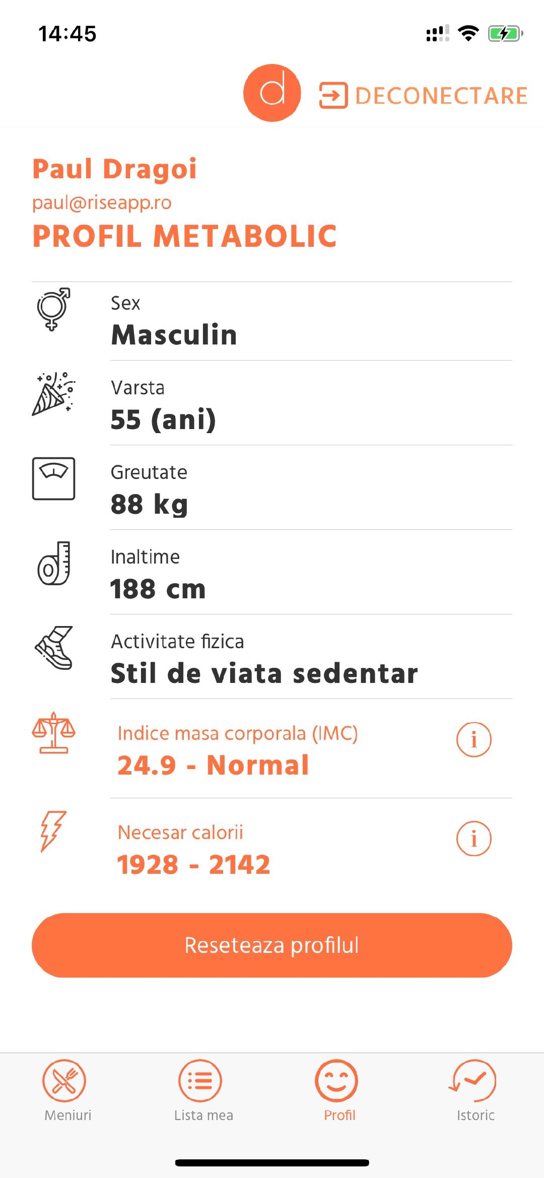 Utilizatorului ii sunt puse la dispozitie retete rapide, cea mai lunga fiind de 30 de minute. Per total, sunt peste 200 de retele, iar meniurile ajung si la 300, in functie de cum sunt combinate alimentele. Dupa ce am testat aplicatia, am primit un numar de 171 de meniuri intre 1700 – 1900 de calorii. De asemenea, am avut optiunea de a seta fie un meniu cu carne de pasare, fie cu peste sau un meniu vegetarian.