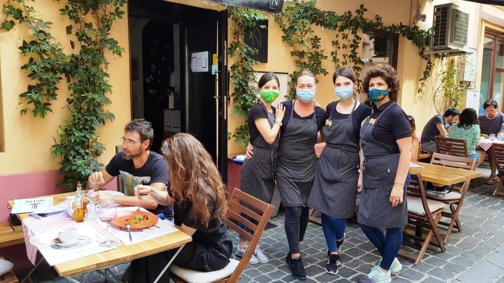 Dar cel puțin la fel de mult ne-a plăcut de cele patru făpturi adorabile din poză. Cea cu părul creț, în special, care ne-a servit pe noi, are chef de viață, de muncă, de vorbă, de glume, de stat la poze, că s-a întors de vreo trei ori cu farfuria ca să o pozăm din nou când i s-a părut că în prima nu-i stătea un pliu de la masca cum trebuie și că în a doua cineva i-a stricat cadrul…