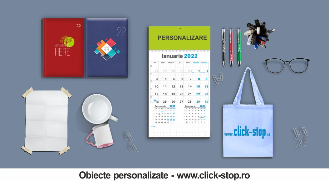 Agende și calendare - Oricine are nevoie de o agendă sau de un calendar pentru a nota task-uri, informații și pentru a urmării date importante. Dacă o să oferi o agendă personalizată sau un calendar de la Click-Stop.ro clienților și colaboratorilor, aceștia o să vadă logo-ul tău de fiecare dată când vor nota ceva în agendă sau vor privi calendarul. Agendele și calendarele personalizate sunt un cadou elegant și de lungă durată.