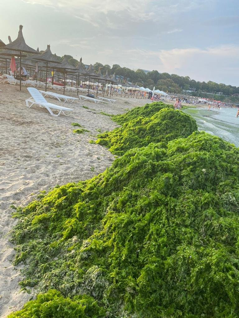 În minivacanța de Sfânta Maria, litoralul românesc s-a confruntat cu ”o înflorire” a algelor în urma furtunilor care au dislocat masele de alge de pe adâncul mării și le-au adus la mal.