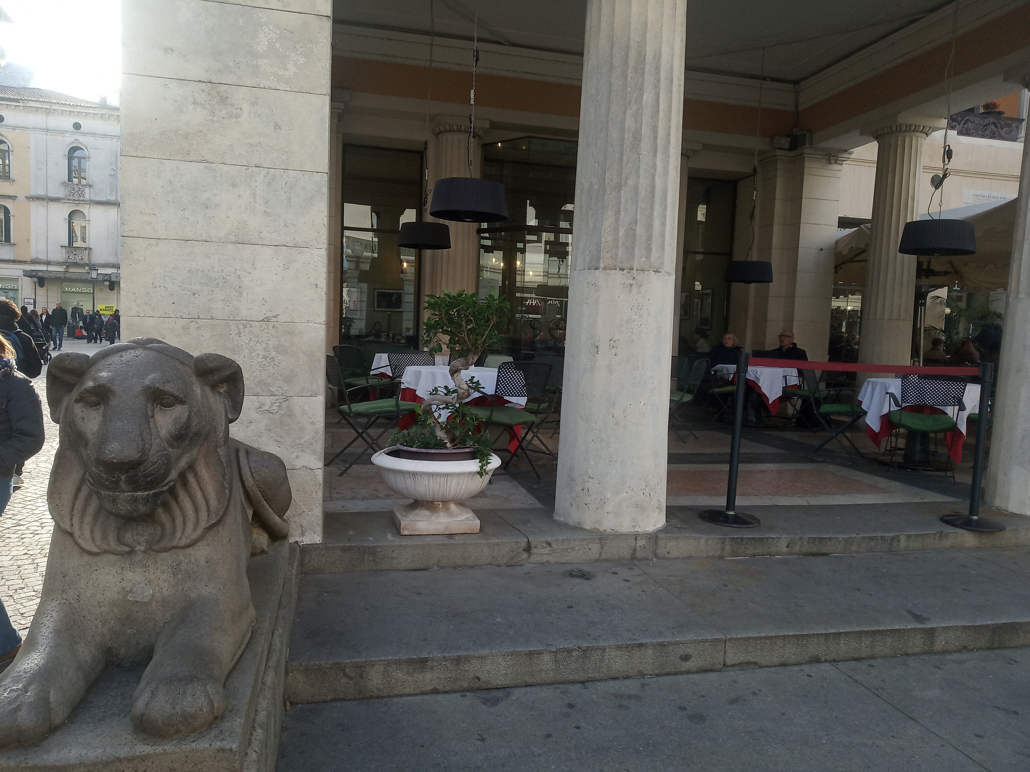 La doi pași (totul e la doi pași în zona turistică a Padovei) este cafeneaua Pedrocchi, una dintre cele mai faimoase cafenele din istoria Europei, deschisă acum aproape 200 de ani. În Salonul Verde de la parter se poate sta, conform tradiției locului, chiar fără să comanzi nimic, iar prețurile sunt rezonabile pentru cineva obișnuit cu Bucureștiul (o cafea e 5 euro, o prăjitură – 6).